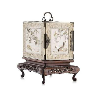 FINE JAPANESE IVORY AND SHIBYAMA BOX AND STAND Y