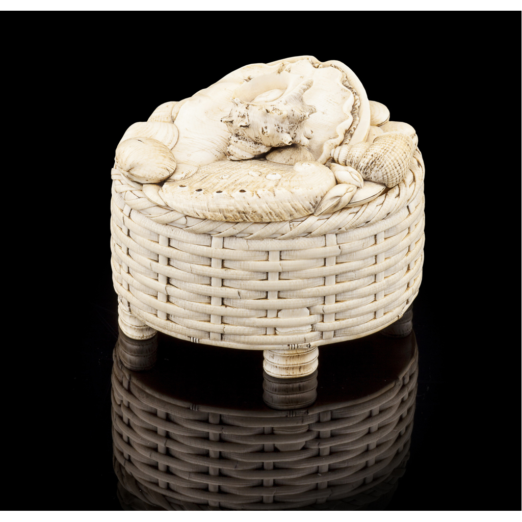 JAPANESE CARVED IVORY BOX AND COVER Y