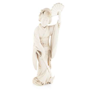 FINE AND LARGE JAPANESE CARVED IVORY OKIMONO OF A DANCER Y