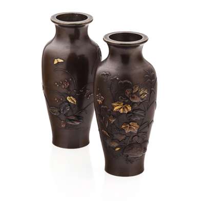 PAIR OF JAPANESE MIXED METAL BRONZE VASES