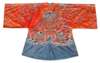 embroidered in blue silks and gold metallic threads with ten dragons against an apricot-orange silk ground above a standing wave hem