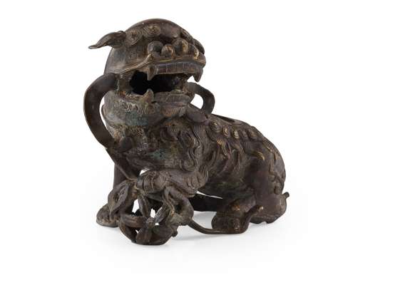 BRONZE CENSER IN THE SHAPE OF A BUDDHIST LION