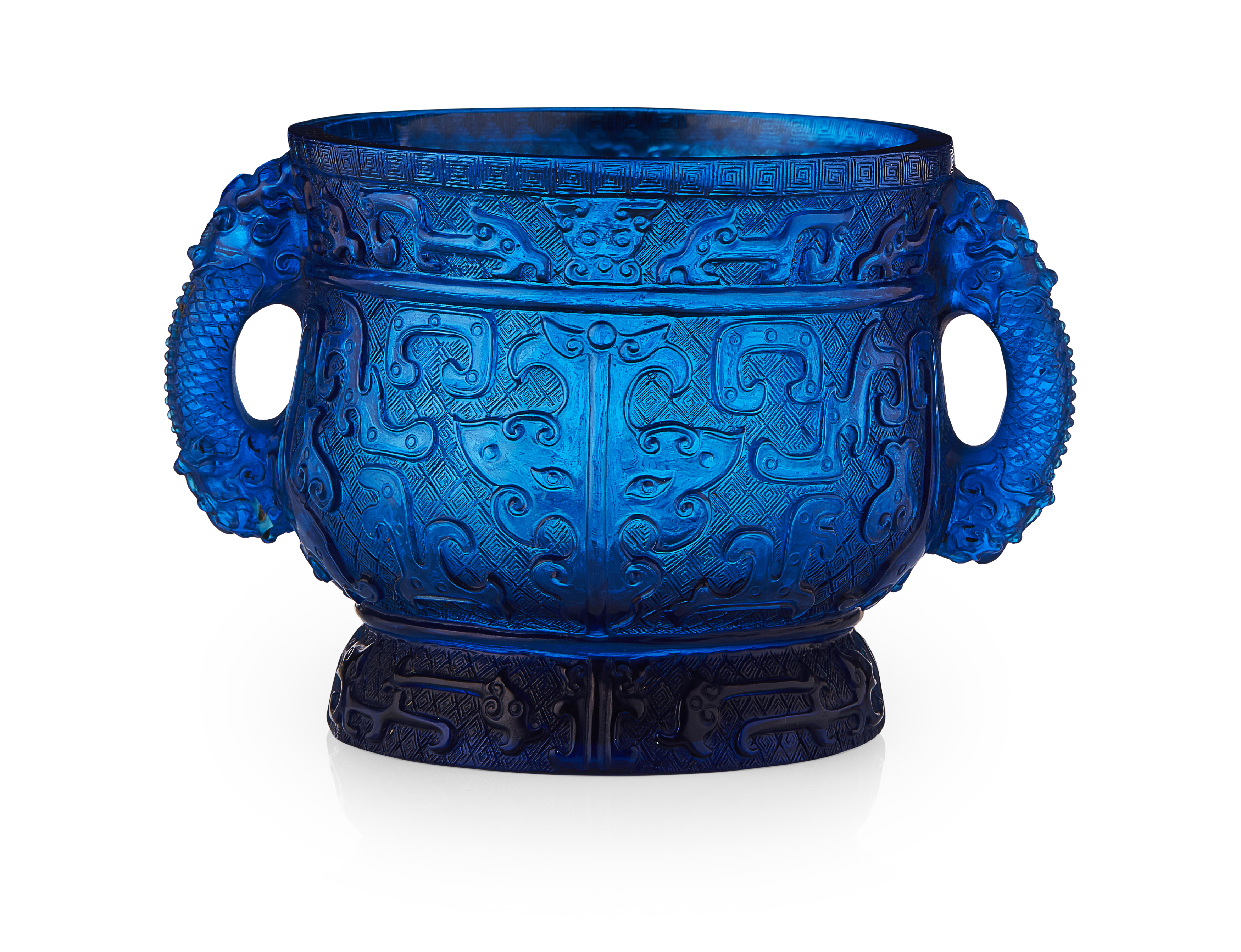 MONOCHROME BLUE PEKING GLASS ARCHAISTIC BOWL