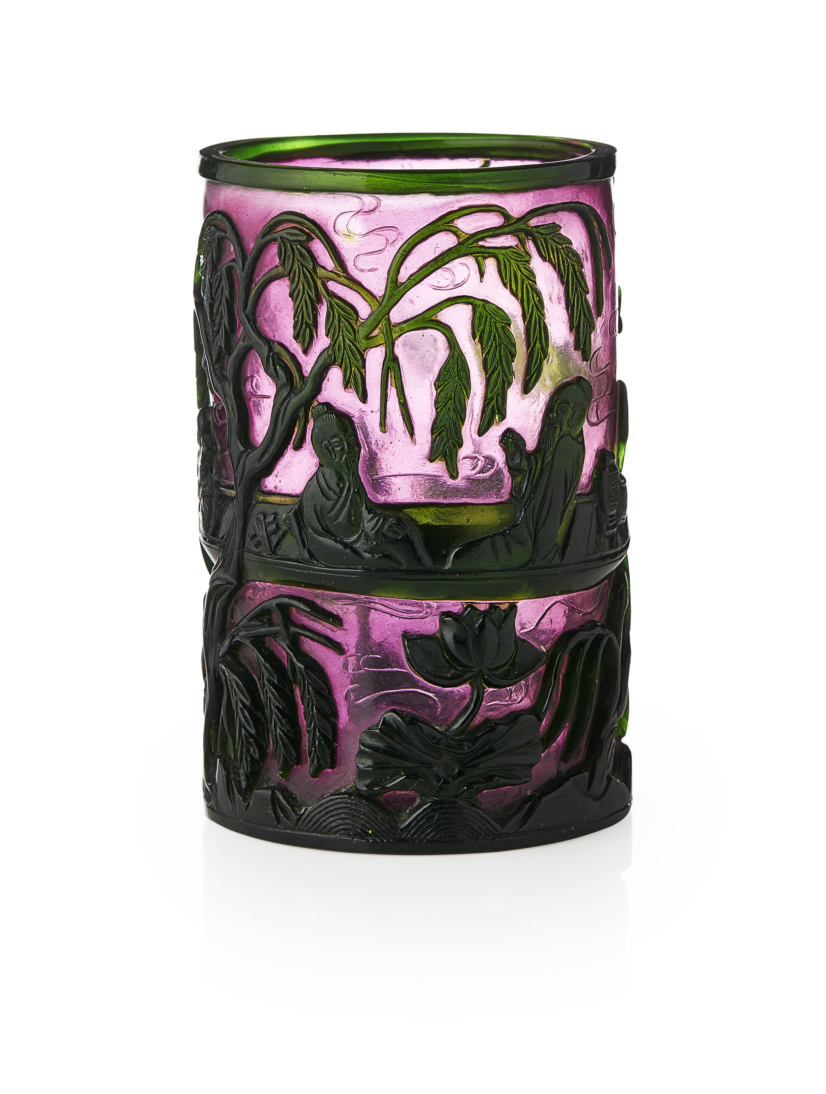GREEN-OVERLAY PEKING GLASS BRUSH POT