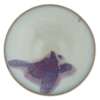 the body covered in a thick glaze of a milky lavender tone, stopping short of the foot to expose the pale brown stoneware, one rich purple splash in the interior