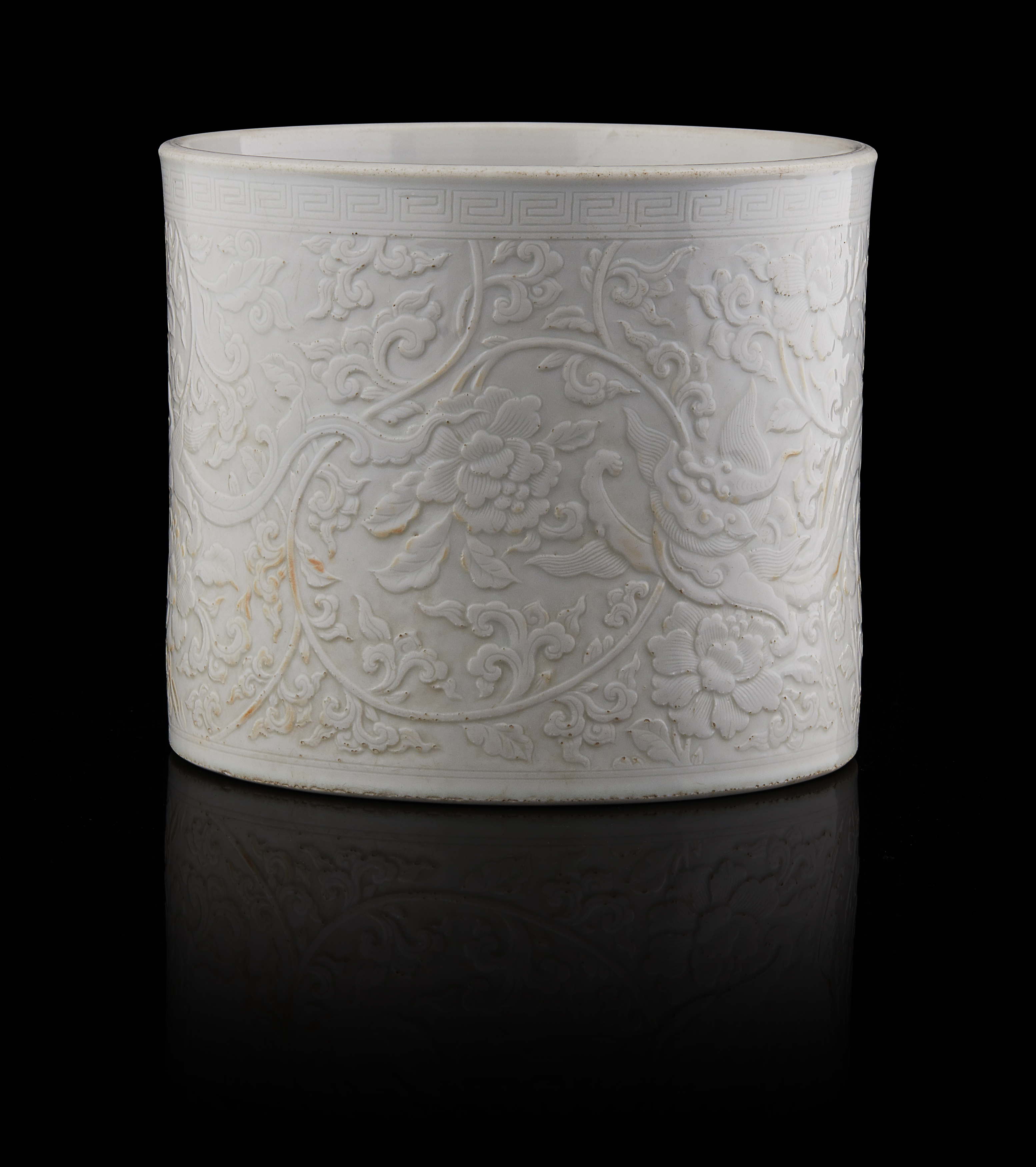 WHITE GLAZED 'PEONY' BRUSH POT, BITONG
