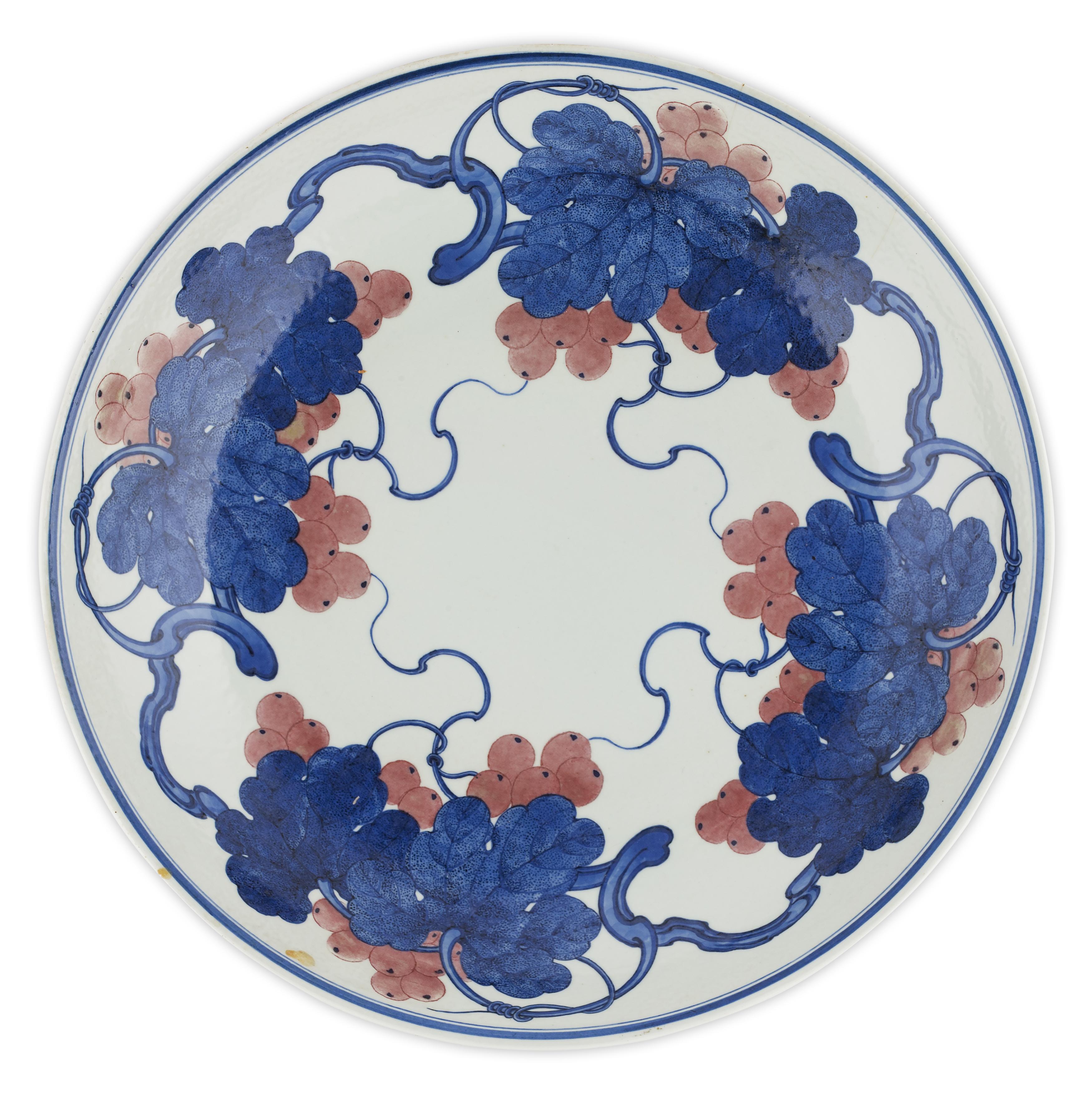 LARGE BLUE AND WHITE AND PEACHBLOOM 'GRAPEVINE' CHARGER