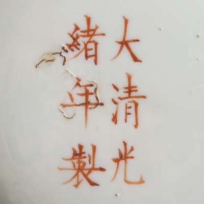 the exterior decorated with three roundels each containing a dragon and a phoenix chasing the flaming ball, reserved on a blue-enamelled ground with lotus flowers and double-gourds amid dense scrolls, the interior painted with a coiled dragon, six-character iron-red mark to the base