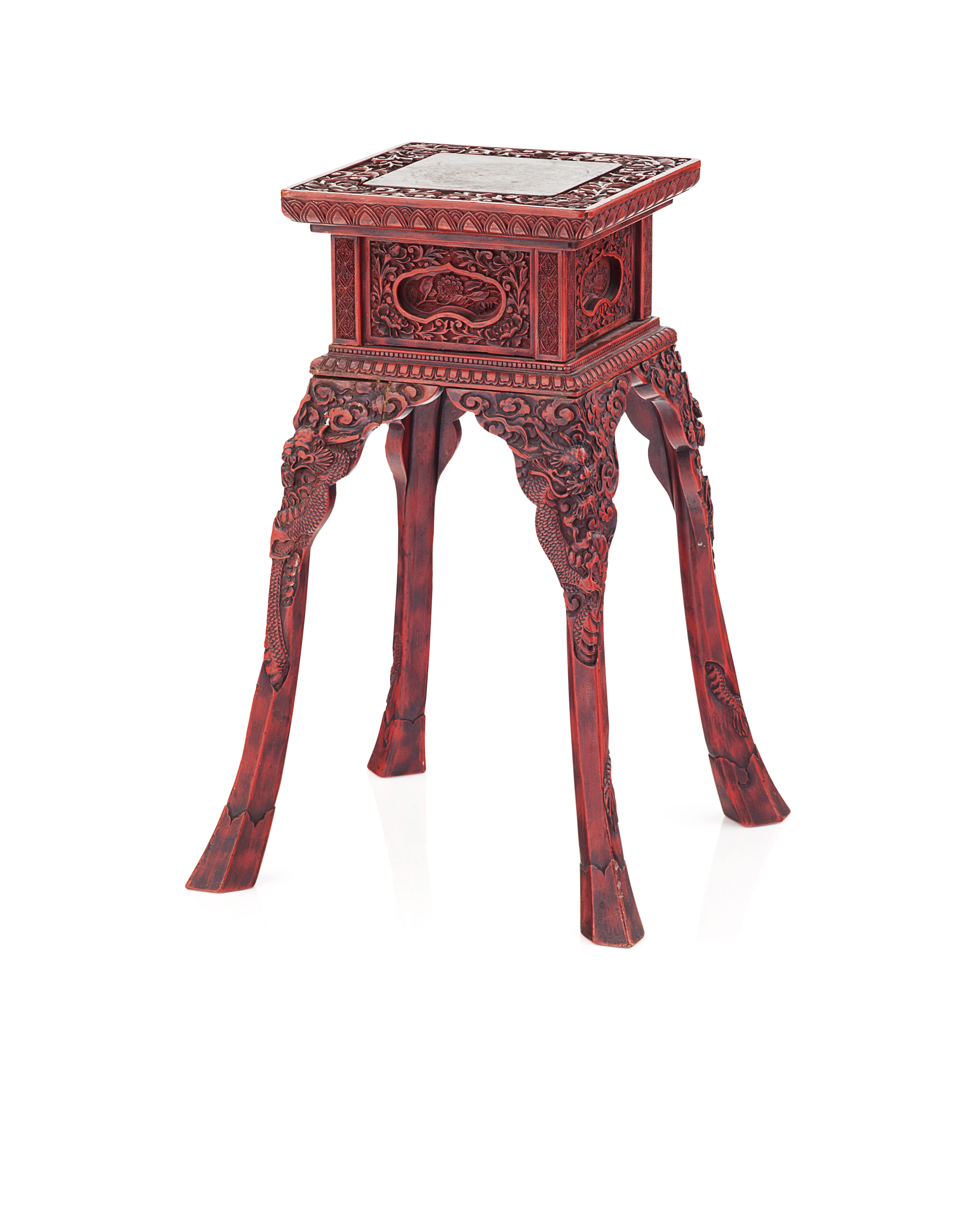 CARVED CINNABAR LACQUER INCENSE STAND