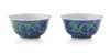 PAIR OF BLUE GLAZED 'DRAGON' CUPS