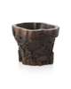 of irregular form imitating the cliffs of a mountain, carved in high relief with a village with houses built upon craggy rocks and half hidden behind pine trees with gnarled branches