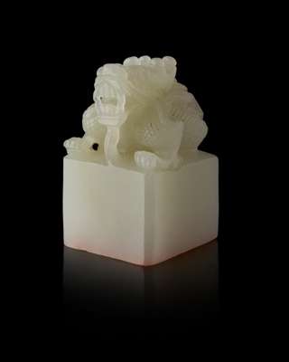 GREENISH-WHITE JADE CARVED 'DRAGON' SEAL