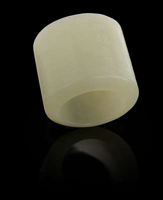 RARE WHITE JADE CARVED AND INCRIBED ARCHER'S RING