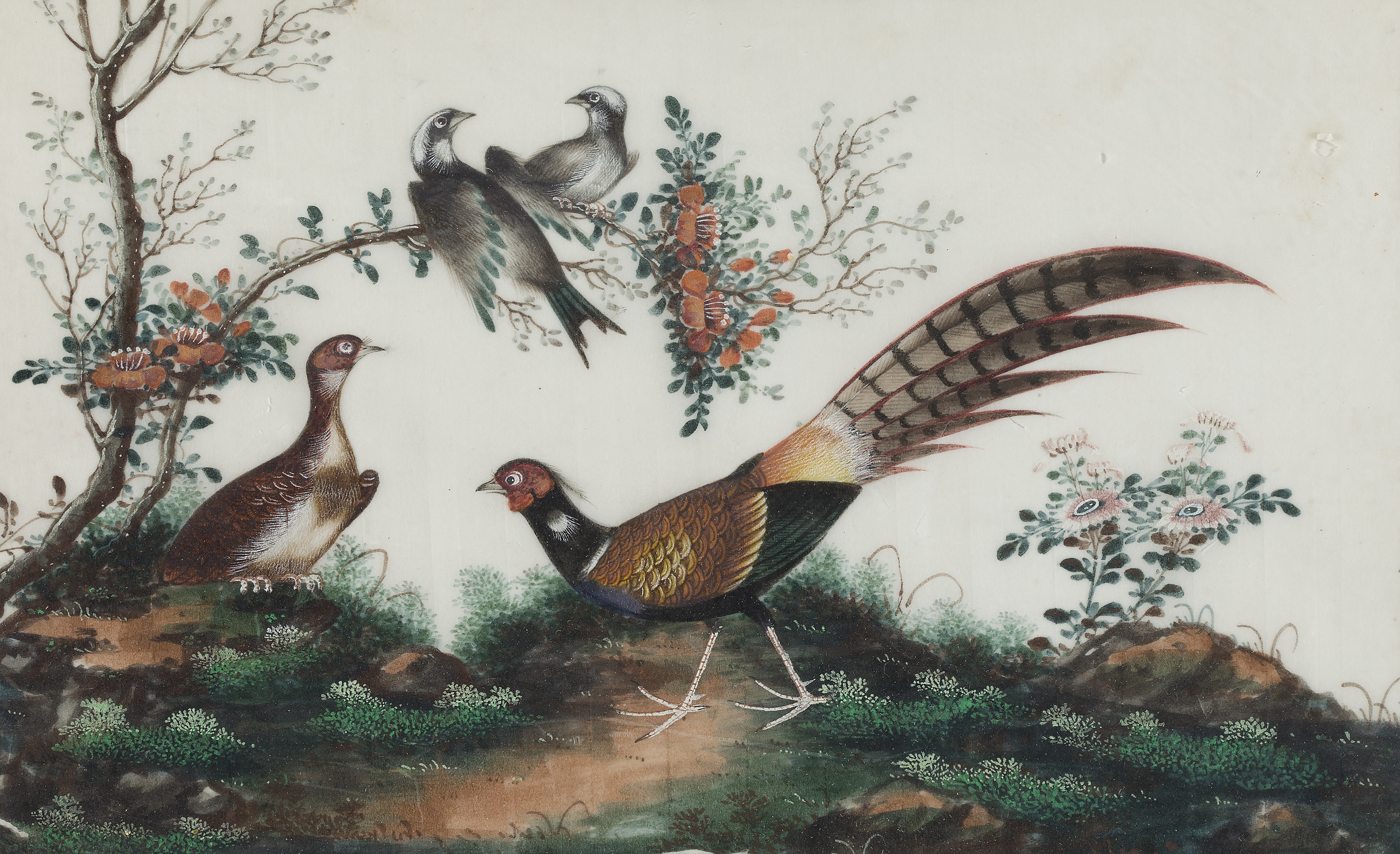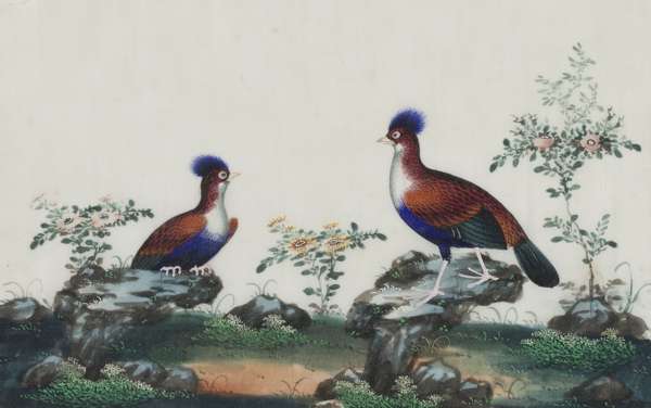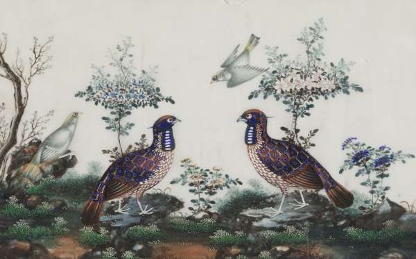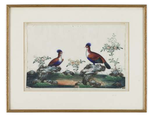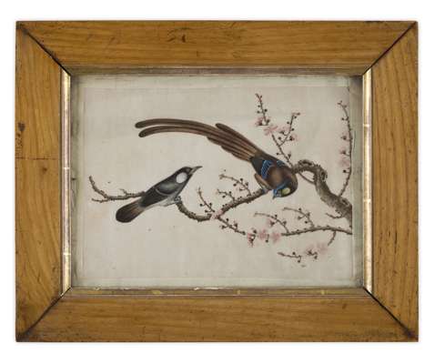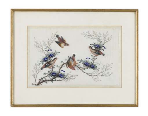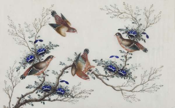 SET OF SIX RICE PAPER PAINTINGS OF BIRDS