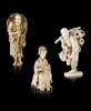 TWO CARVED IVORY OKIMONO AND ONE NETSUKE Y