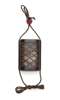 covered in gold speckles, one side decorated with a rooster and chick and the other with a hen and chick, with fitted holder in black lacquer trellis work, with rabbit-shaped glass ojime