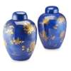 PAIR OF GILT-DECORATED POWDER-BLUE OVOID JARS AND COVERS