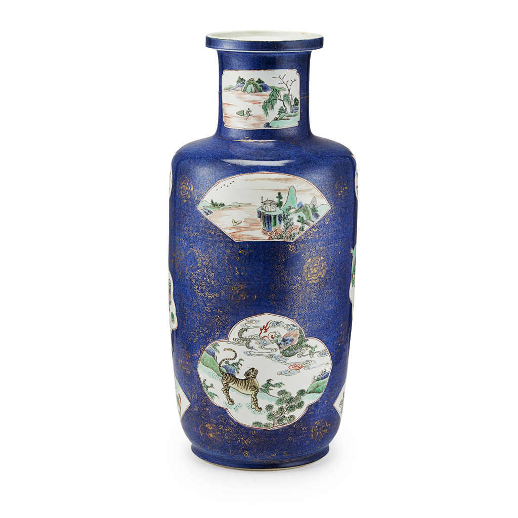 POWDER BLUE AND GILT-DECORATED ROULEAU VASE