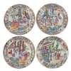 painted in the typical palette with scenes of mandarin officials and family gathered on a riverside veranda, surrounded by birds and flowers and the Bajixiang, with gilt highlights (4)