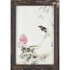 painted with a bird perched on a leafy branch above a large spray of peony blooms, signed Yiting, with a seal reading Cheng Yin, wood frame