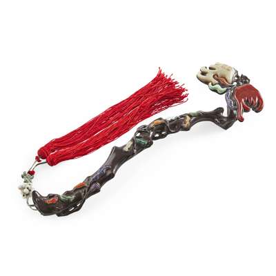 JADE, CARNELIAN AND TURQUOISE INLAID WOOD RUYI SCEPTRE