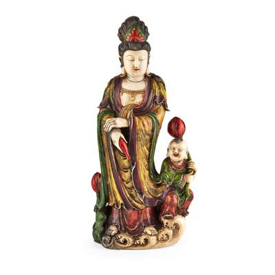 PAINTED SOAPSTONE FIGURE OF GUANYIN