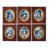 SET OF SIX REVERSE PAINTED GLASS OVAL MINIATURES