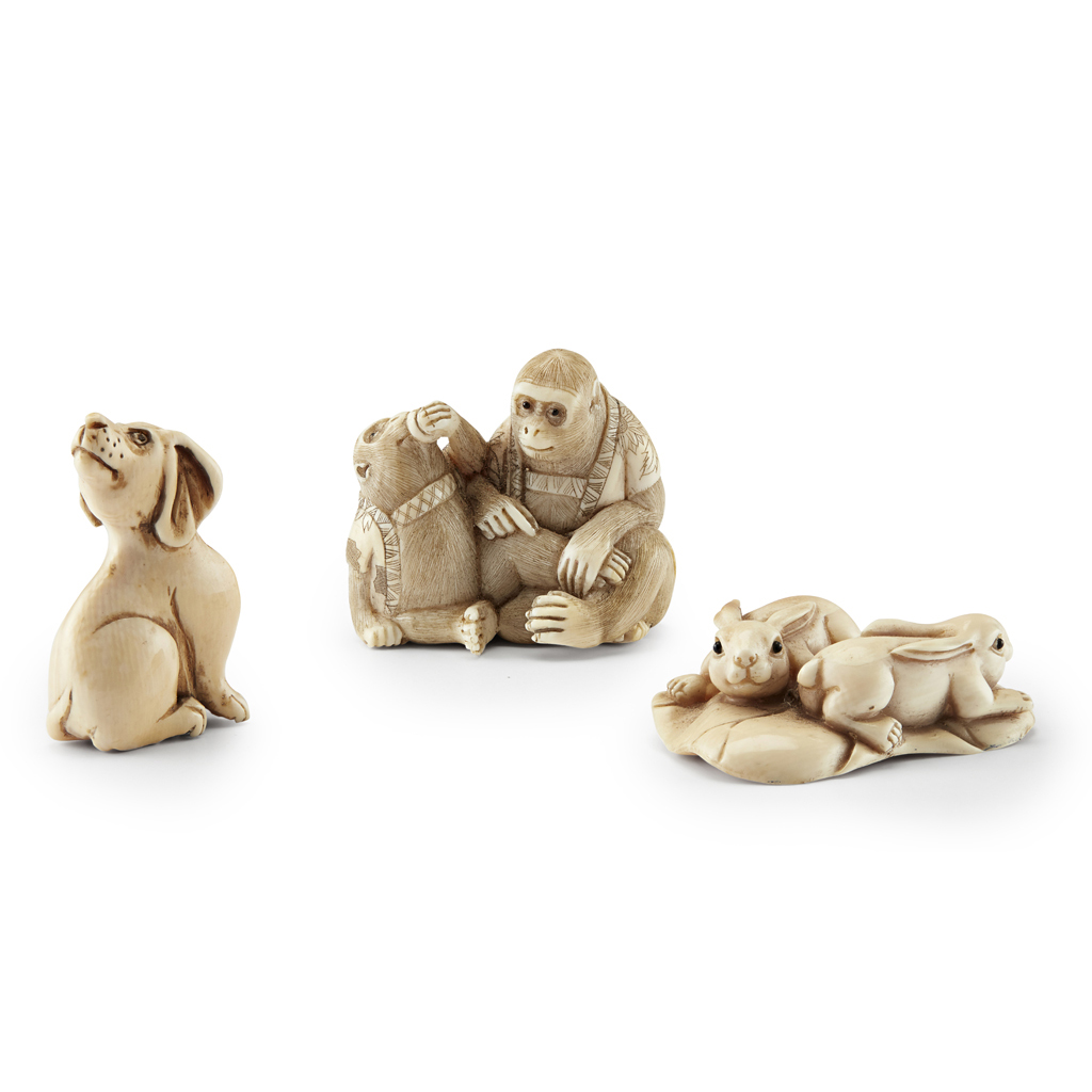 THREE CARVED IVORY NETSUKE Y