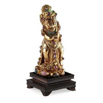 SMALL HARDSTONE EMBELLISHED GILT-BRONZE FIGURE OF A DEVI
