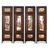 FOUR-FOLD HARDWOOD SCREEN WITH INSET PORCELAIN PLAQUES