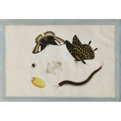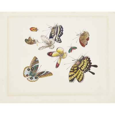 SET OF TWENTY-EIGHT EXPORT PAINTINGS OF BUTTERFLIES, FRUITS AND PLANTS