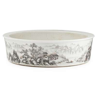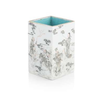 GRISAILLE DECORATED 'EIGHT IMMORTALS' BRUSHPOT, BI TONG