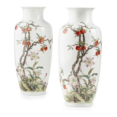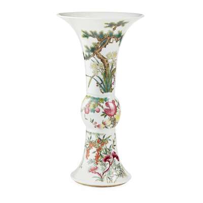 RARE FAMILLE ROSE 'PEONY' GARLIC-MOUTH VASE
