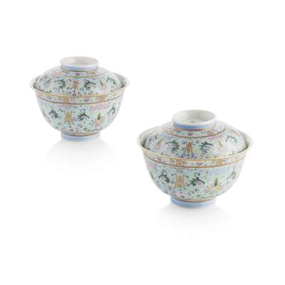 PAIR OF FAMILLE ROSE TEA BOWLS AND COVERS