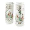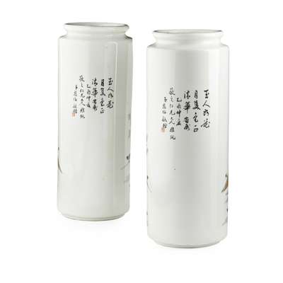 one side painted with beauties at leisure in a garden, the reverse inscribed with a poem and signed 'gifted to brother Jing Zhi by En Bo' (2)