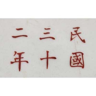 decorated with wild geese wading in a shallow pond amongst reeds, the reverse inscribed with a poem and bearing the dedication to 'Brother De Lin'