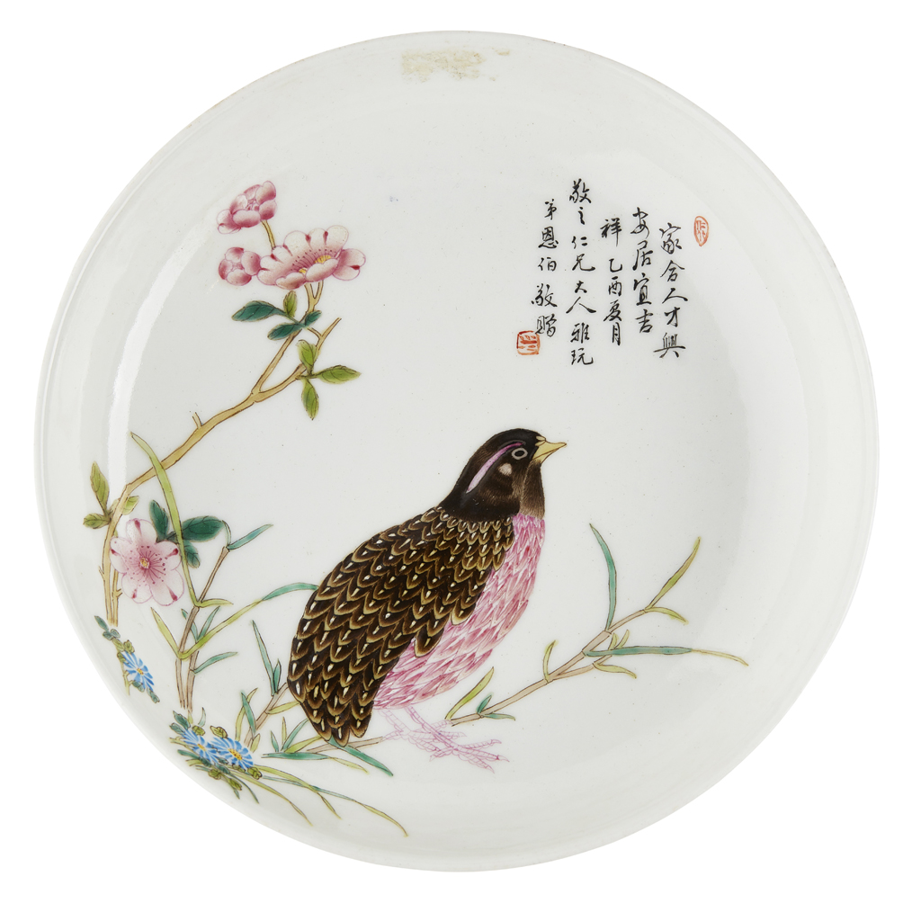 painted with a quail perched upon a flowering branch, inscribed with a poem, with dedication to his brother Jing Zhi by En Bo