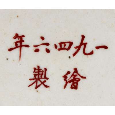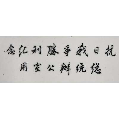 decorated with a continuous scene of figures seated in cottages or travelling in a ferry within a mountainous landscape, inscribed with 'To celebrate the victory of the Sino-Japanese war'
