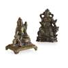 seated in lalitasana on a lotus throne, with a lotus blossom at her shoulder, 10cm high; together with a BRONZE FIGURE OF THE GUARDIAN VAISHRAVANA, TIBET, 19TH CENTURY, in full armour seated on a lion, 11cm high (2)