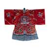 The colour red denotes celebration and this jacket would not have been worn at court, but for a private celebration, while still wishing to display the rank of the wearer's husband.