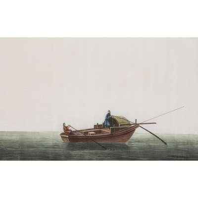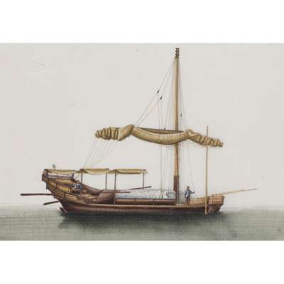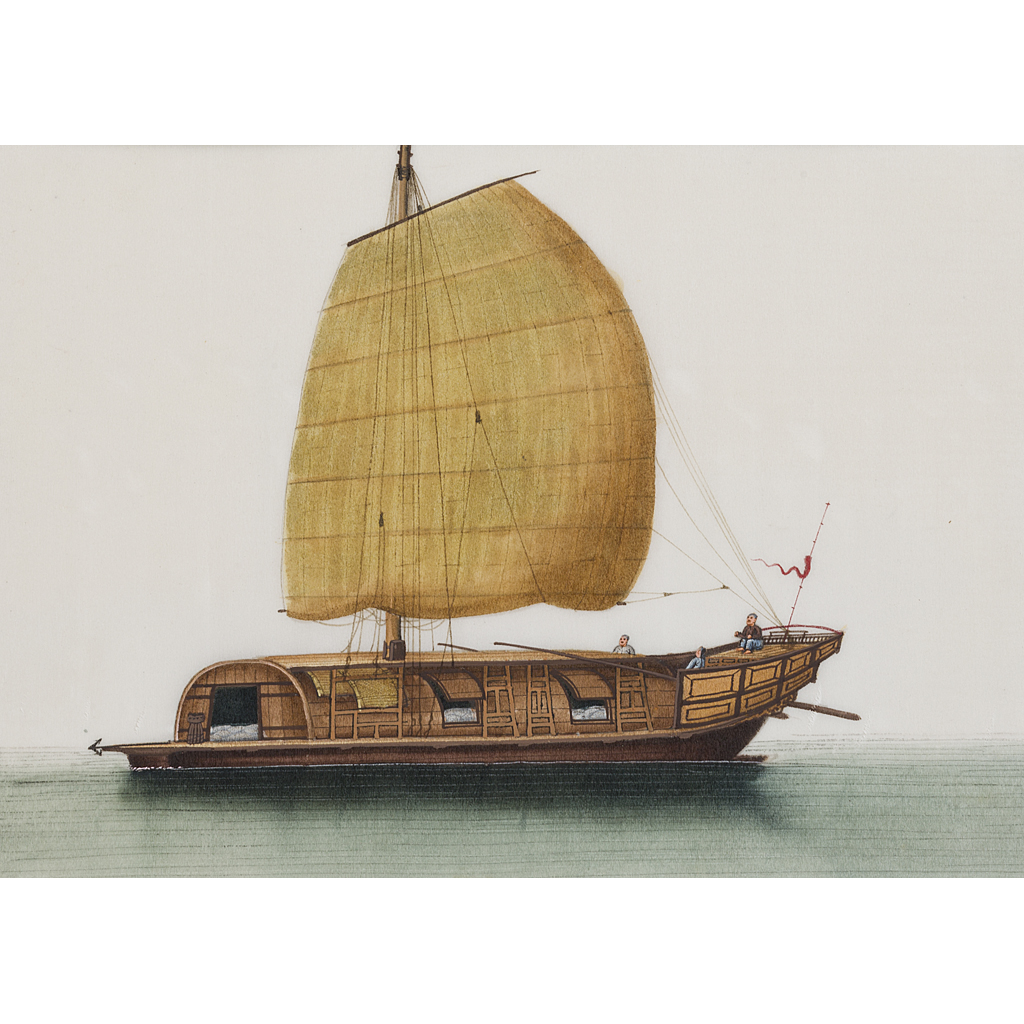 ALBUM OF TWELVE PITH PAPER PAINTINGS OF JUNKS AND BOATS