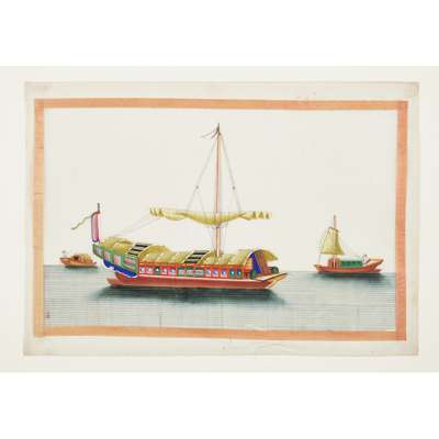 SET OF NINE PITH PAPER PAINTINGS OF BOATS AND JUNKS