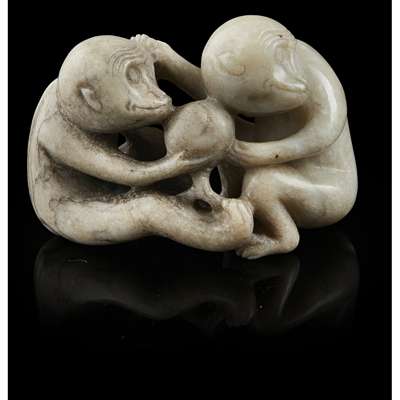 WHITE AND GREY JADE 'MONKEY' GROUP