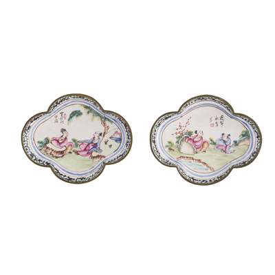 PAIR OF CANTON ENAMEL QUATREFOIL DISHES