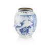 BLUE AND WHITE TRANSITIONAL 'ROMANCE OF THE THREE KINGDOMS' JAR