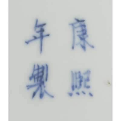 the first painted with birds and butterflies amongst flowers and fruits, the base with a Kangxi mark, the second with cracked ice and prunus design, the base with a Kangxi mark, the third depicting the 'Wu Zi Deng Ke' (the five sons passing the imperial examination) motif, the base with double rings (3)