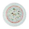 brightly enamelled to the interior with a pair of magpies amongst flowering branches of lotus, prunus and chrysanthemum, the rounded cavetto delicately pierced below a painted band of flowerheads and bamboo