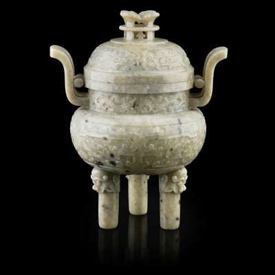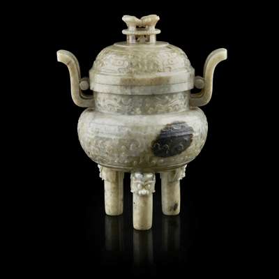 ARCHAISTIC JADE TRIPOD CENSER AND COVER