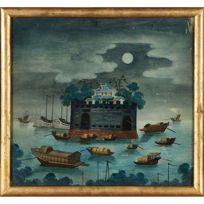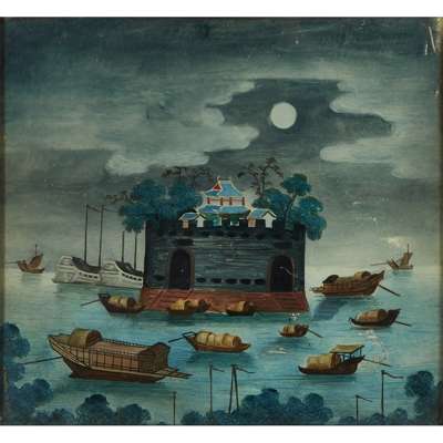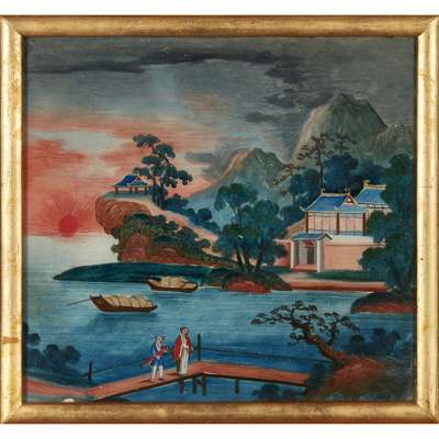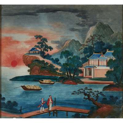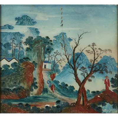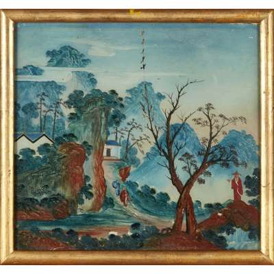 SET OF EIGHT REVERSE GLASS PAINTINGS
