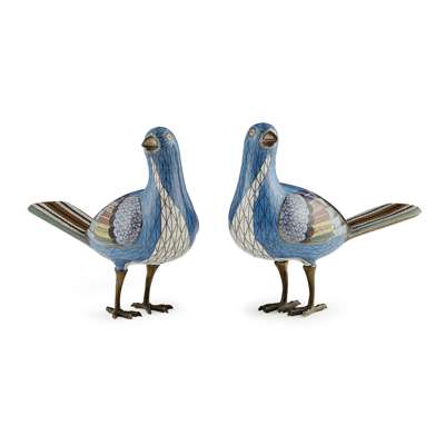 PAIR OF CLOISONNÉ ENAMEL MAGPIES